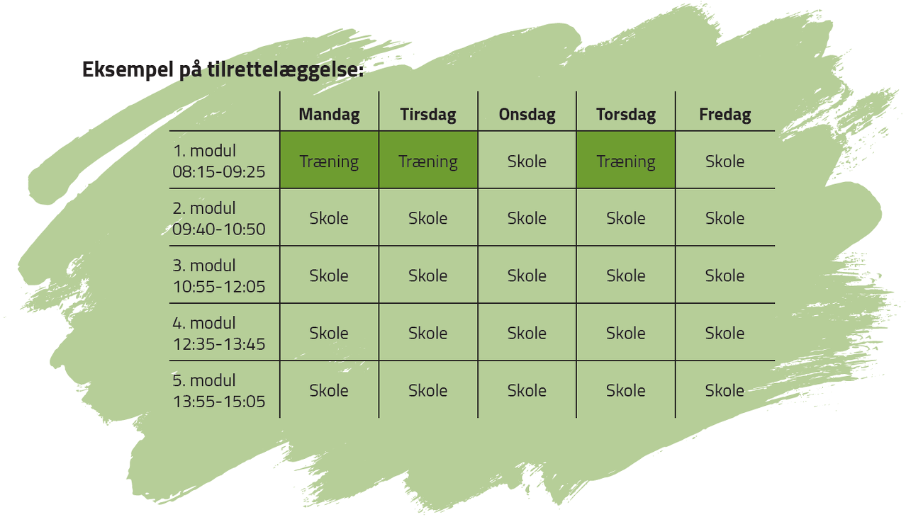Forløbet er tilrettelagt således, at der er plads til morgentræning i skoleskemaet tre gange om ugen.
